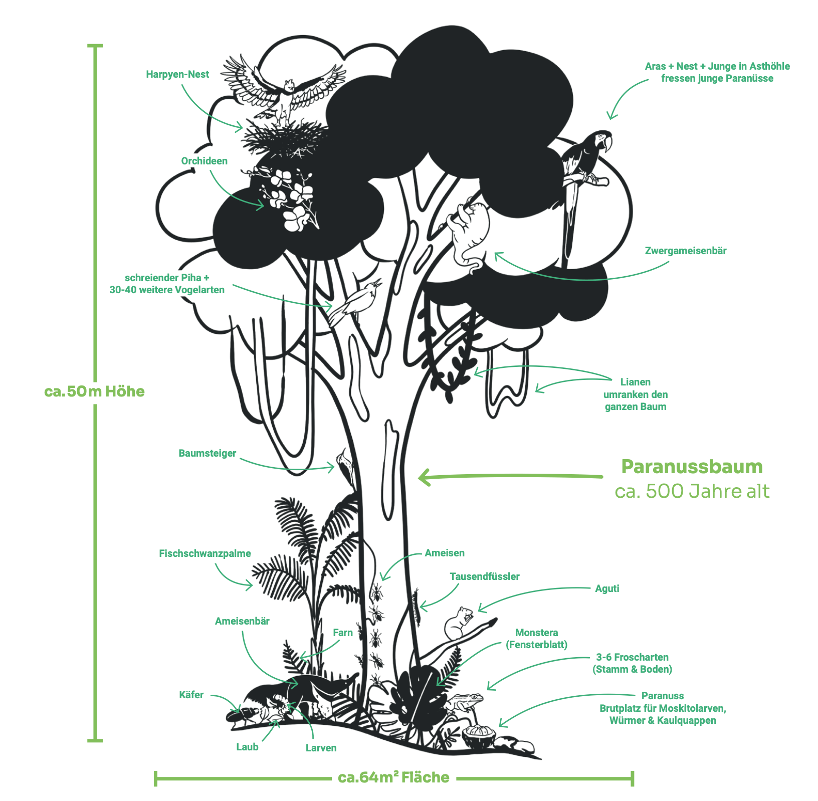 Durante nuestras efímeras vidas humanas, sólo podemos proteger un árbol a corto plazo. Por eso queremos crear estructuras que garanticen la protección de estas antiguas criaturas para las generaciones venideras, independientemente de los cambios políticos.