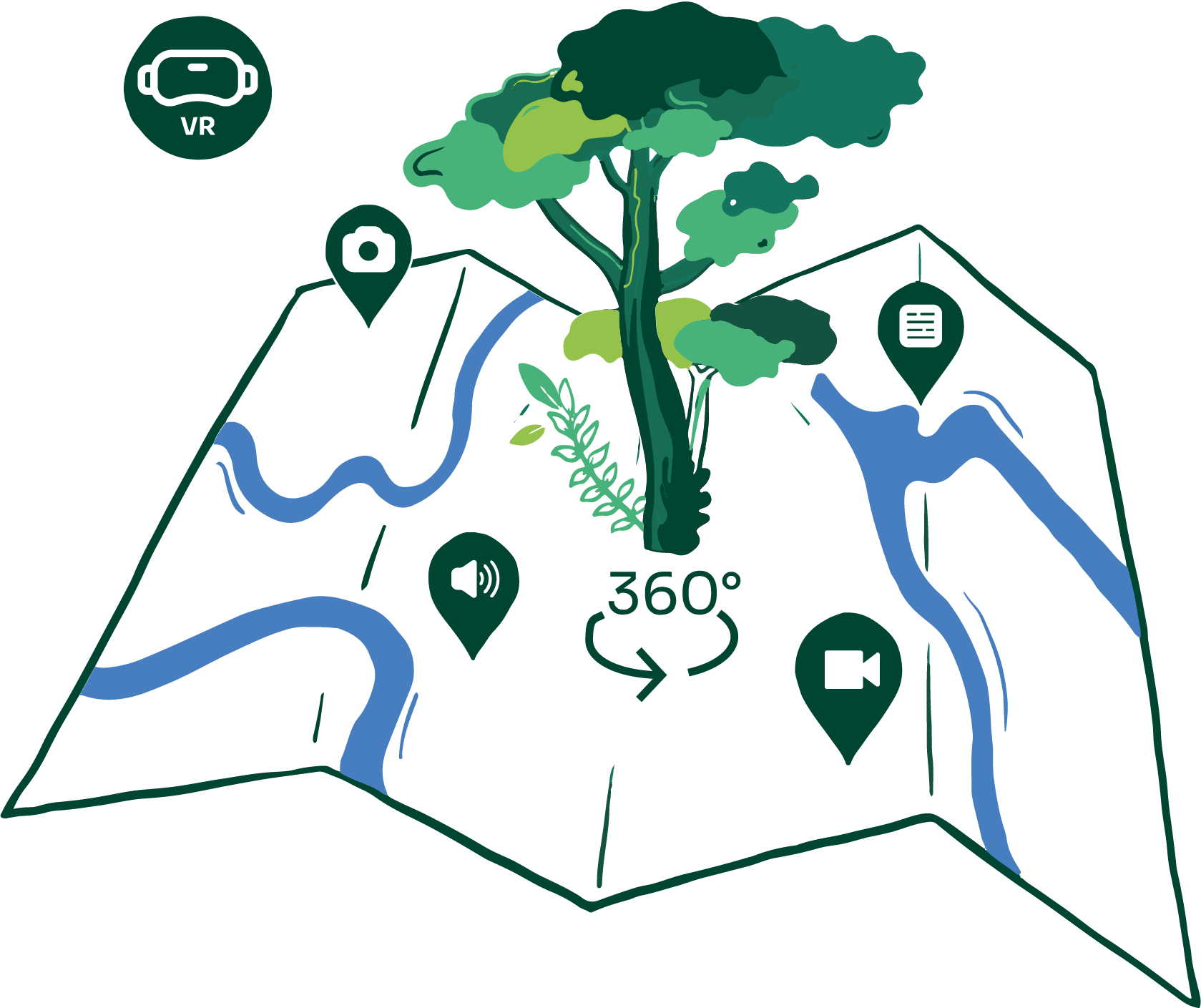 Visite nuestro bosque interactivo. Allí podrás viajar virtualmente a nuestras zonas protegidas, echar un vistazo a las distintas regiones en una vista de 360° y descubrir montones de emocionantes fragmentos de audio, vídeos y galerías de imágenes de nuestras expediciones. Incluso puedes ponerte debajo de un poderoso gigante de la selva y vivir (casi) de cerca el bosque que estás protegiendo.
