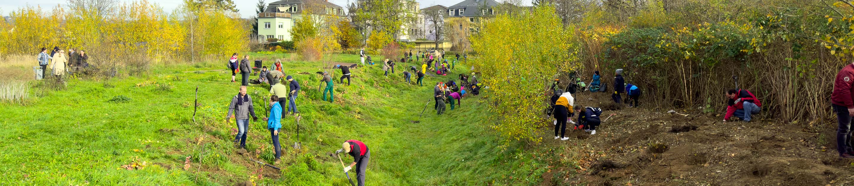 De 2019 a 2023, hemos plantado árboles y arbustos en Dresde y sus alrededores cada año en otoño y primavera durante la mejor temporada de plantación (normalmente en noviembre, diciembre y febrero) junto con muchos voluntarios. ¡Ahora te toca a ti!